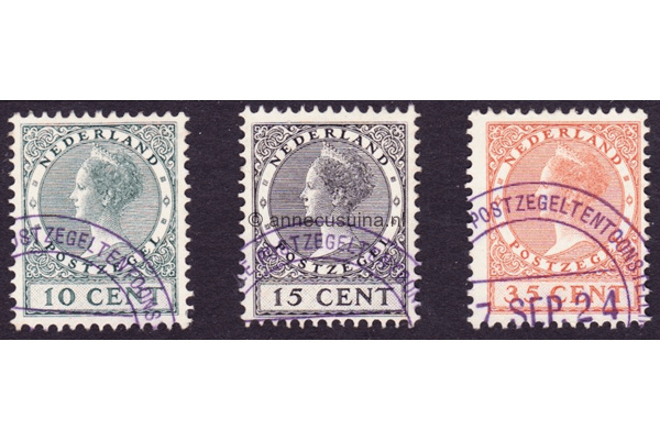 Nederland NVPH 136-138 Gestempeld FOTOLEVERING Tentoonstellingszegels Koningin Wilhelmina 1924